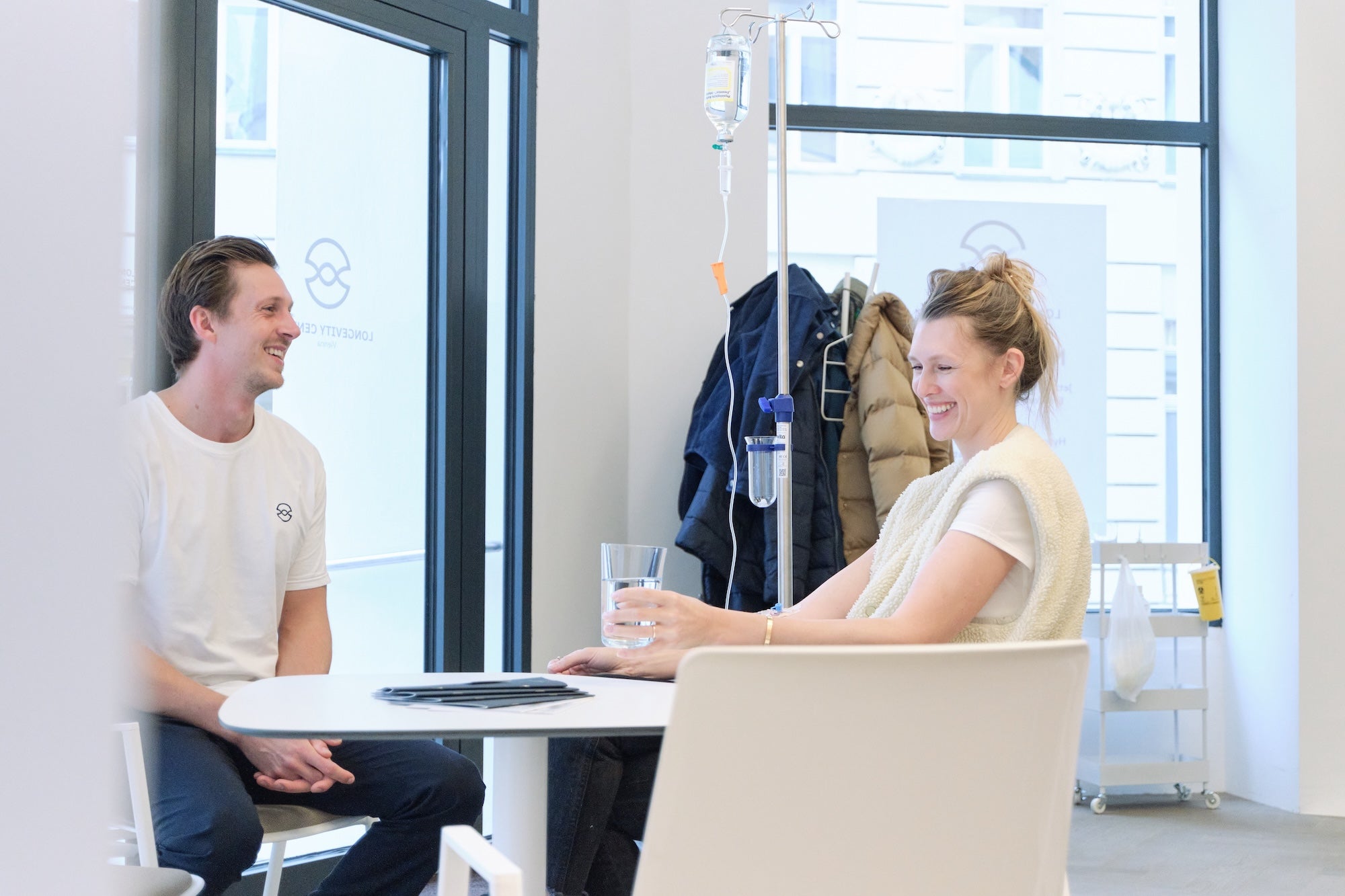 - Lehn dich zurück und genieße die 60-minütige Infusion in ruhiger, entspannter Atmosphäre.